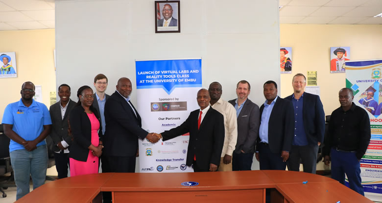 The University of Embu, in partnership with the University of Michigan (UM) and North Carolina State University, officially launched a Collaborative Co-Teaching Programme on Friday, 17th April 2026. The visiting delegation was led by Prof. Martin Thuo of North Carolina State University, alongside Prof. Johan Foster, Prof. Michael Bortner, and Dr. Manza Atkinson. They were received by the Ag. Deputy Vice-Chancellor, Academics, Research and Extension, Prof. Paul Njiru Nthakanio on behalf of the VC, Prof. Daniel Mugendi.