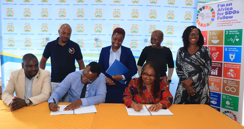 The Office of Career Services on Thursday, 26th March 2026, signed a Memorandum of Understanding (MoU) with Africa for SDGs at the Charter Hall. The ceremony was officiated by the Deputy Vice-Chancellor, Planning, Administration and Finance, Prof. Eucharia Kenya, on behalf of the Vice-Chancellor, Prof. Daniel Mugendi Njiru, alongside the CEO of Africa for SDGs, Dr. Joe Bonga. The partnership aims to support students in volunteerism and enhance their career development pathways.