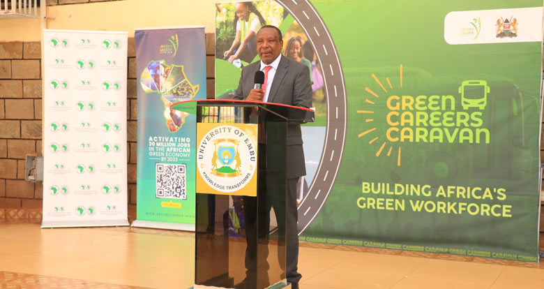 The University of Embu has partnered with Jacob’s Ladder Africa (JLA) to equip young people with green skills and prepare them for opportunities in the green economy as part of a national initiative to tackle youth unemployment and promote climate-smart innovation. Through this collaboration, the University hosted the Green Career Day, on Tuesday, 28th October 2025, at the University’s Tentatorium Hall, under the Green Careers Caravan (GCC), a five-year initiative supported by 15 public universities, the Vice-Chancellors’ Committee, and the State Department for Higher Education.